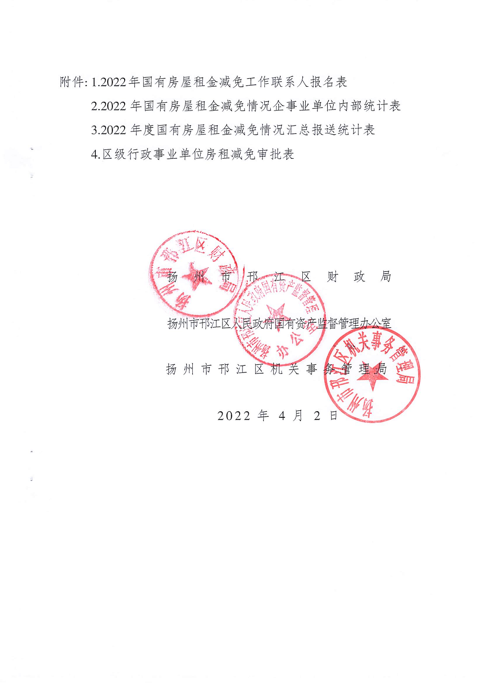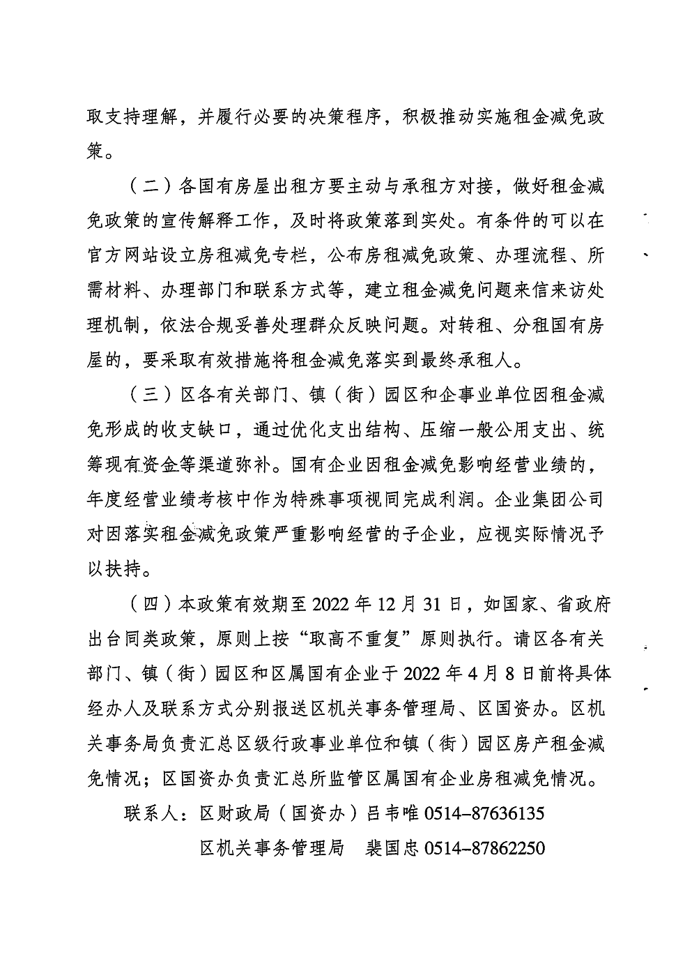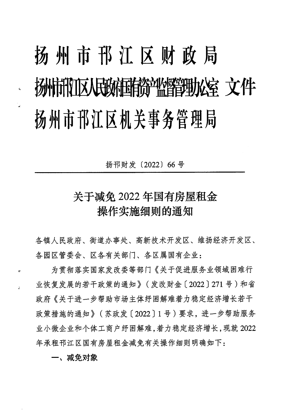 關(guān)于減免2022年國有房屋租金操作實(shí)施細(xì)則的通知